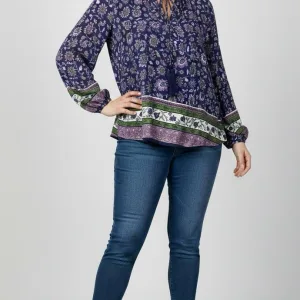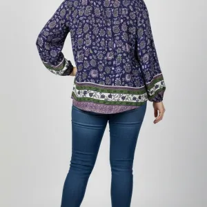 Blusa azul con flores lilas mujer talla grande Natural Life XL