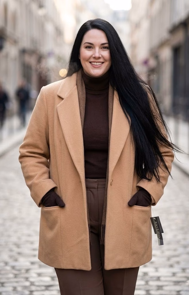 Abrigo beige Kate Hill para mujer, elegante, cómodo y abrigado, ideal para días fríos con excelente calce en tallas grandes.