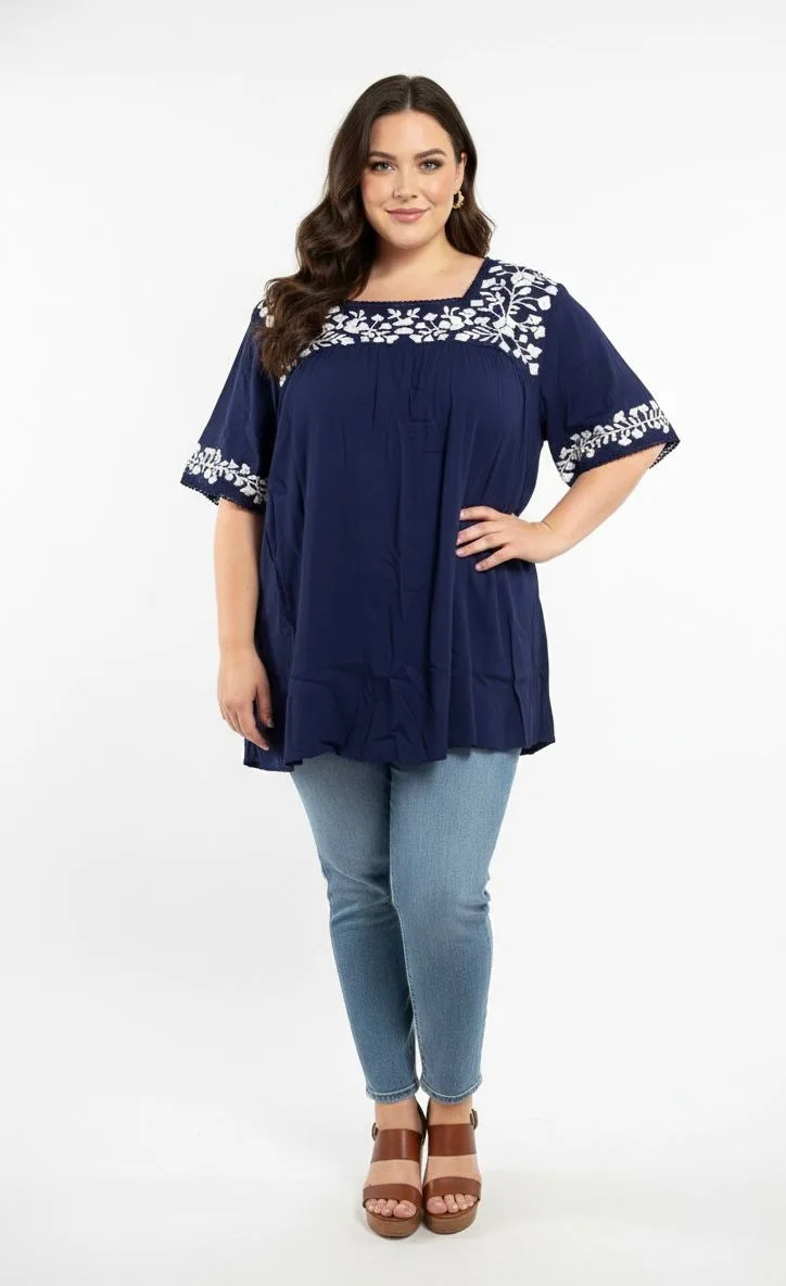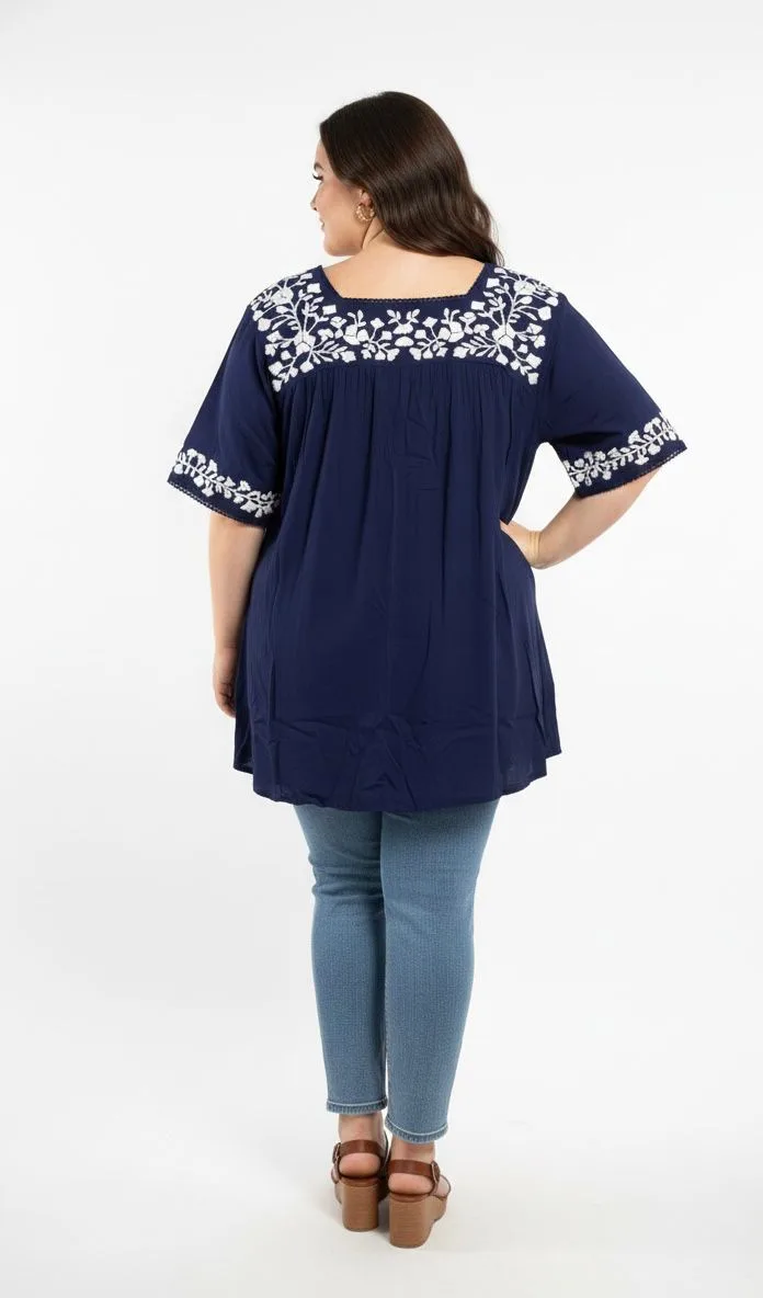 Blusa mujer azul con bordado blanco Solitaire talla 2XL
