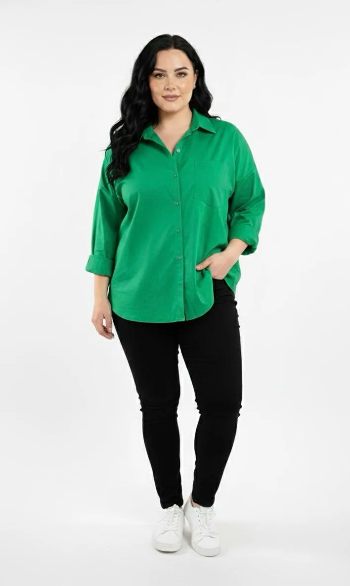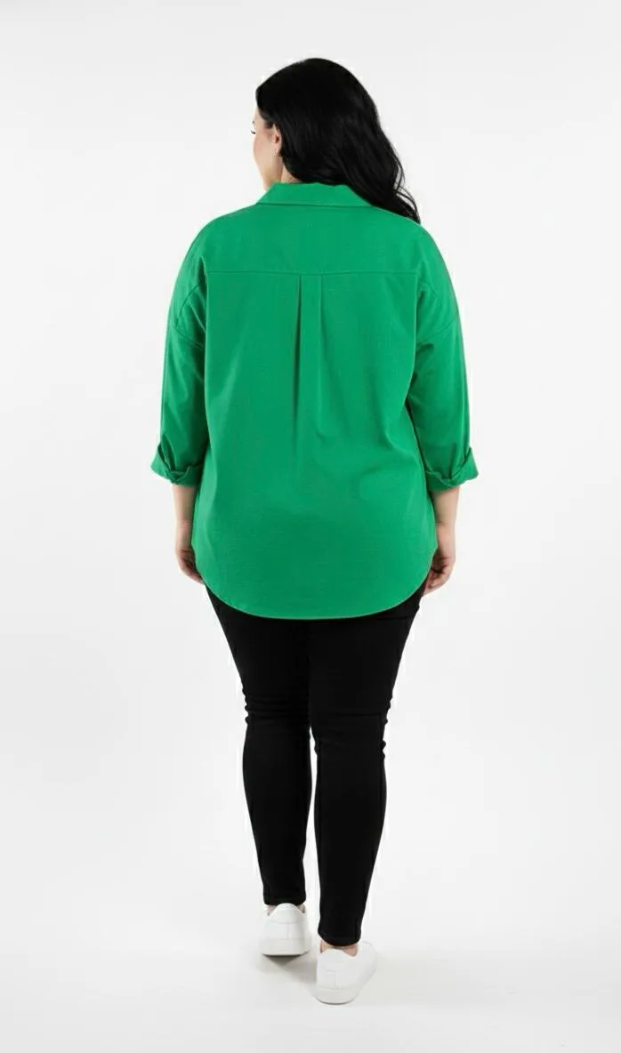 Blusa verde tipo camisa marca J for Justify, talla 2XL, cómoda y versátil.
