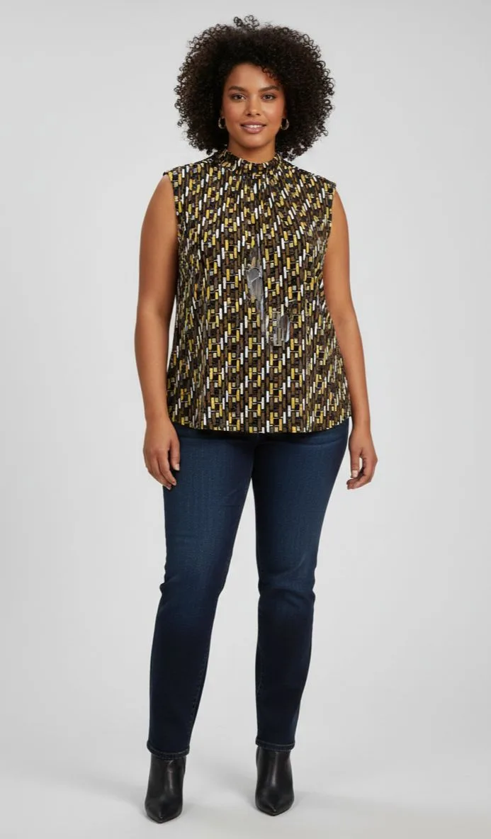 Esta blusa marca Worthington destaca por su estampado geométrico moderno, ideal para quienes buscan una prenda con personalidad y estilo. Su tela liviana y de caída fluida entrega comodidad durante todo el día, permitiendo un calce favorecedor y fresco.