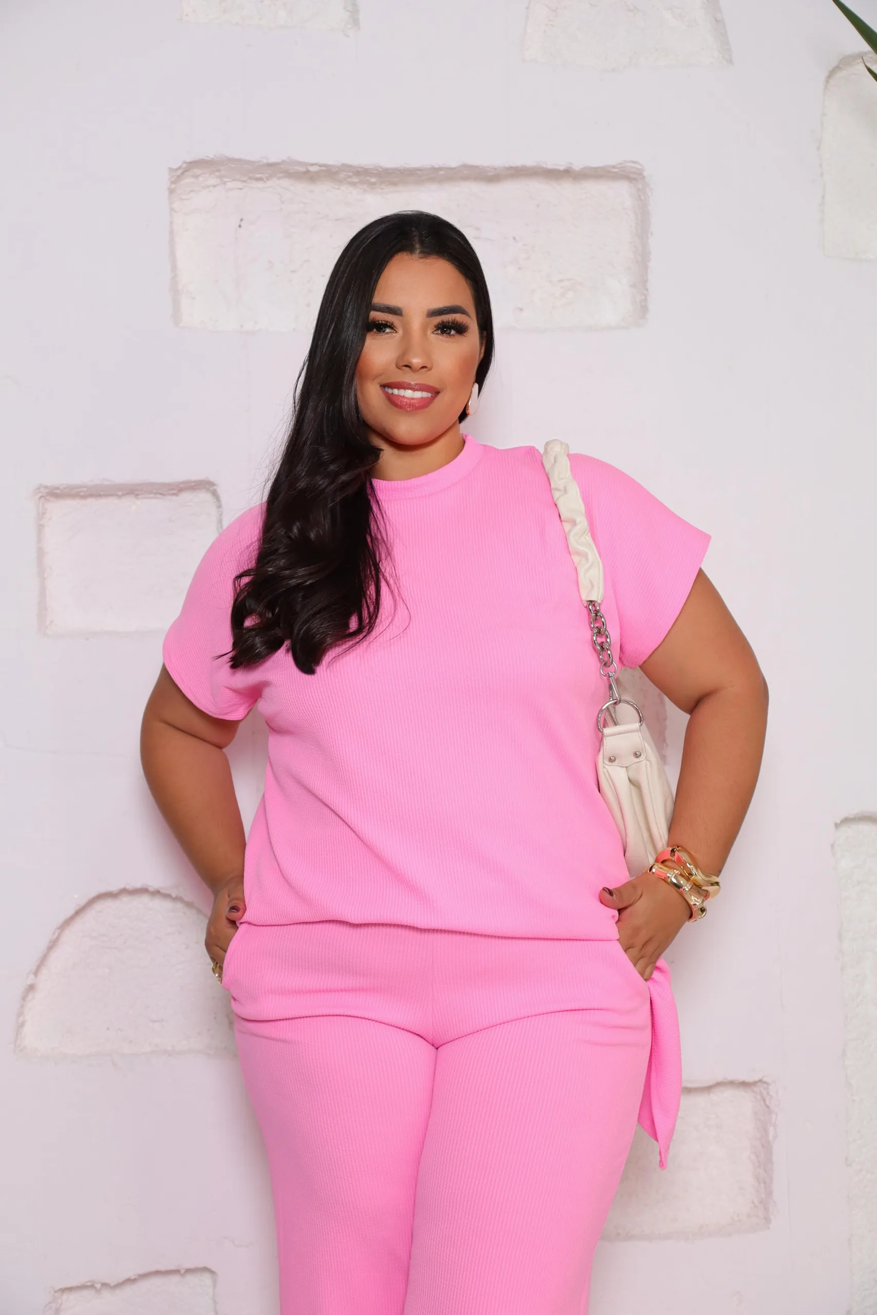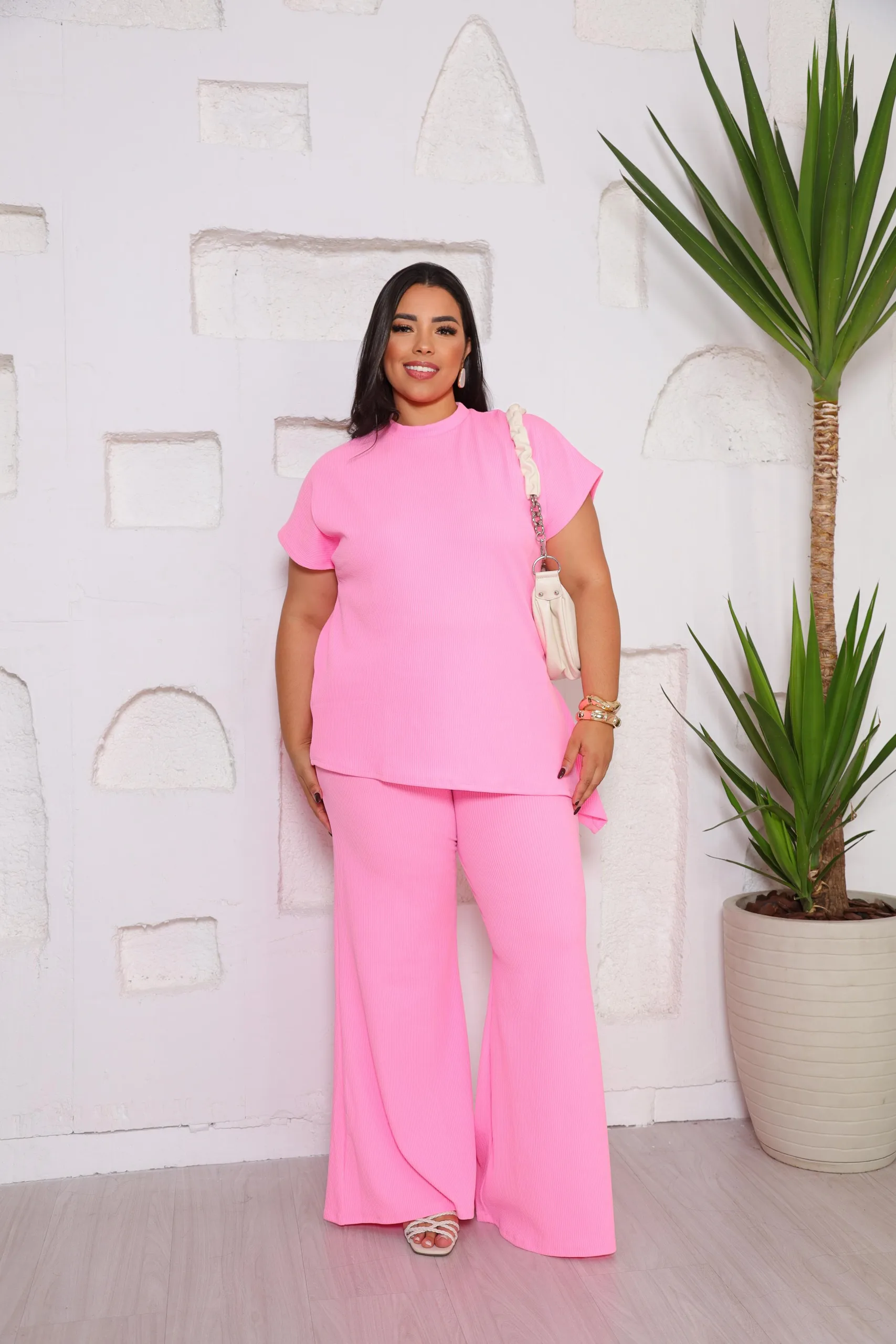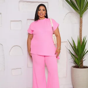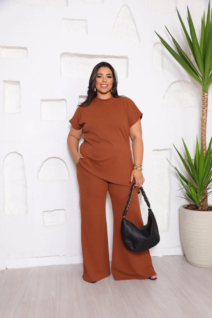 Conjunto de 2 piezas mujer , pantalón palazo con bolsillos y blusa elasticidado, confección Brasileña