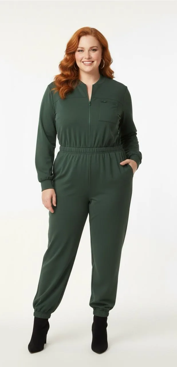 Su diseño de manga larga, cierre frontal y cintura elasticada ayuda a definir la silueta sin ajustar en exceso, ofreciendo libertad de movimiento durante todo el día. Es perfecto para viajes, días activos, salidas informales o incluso como outfit urbano relajado.