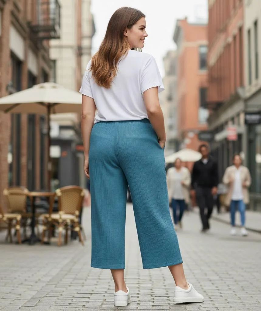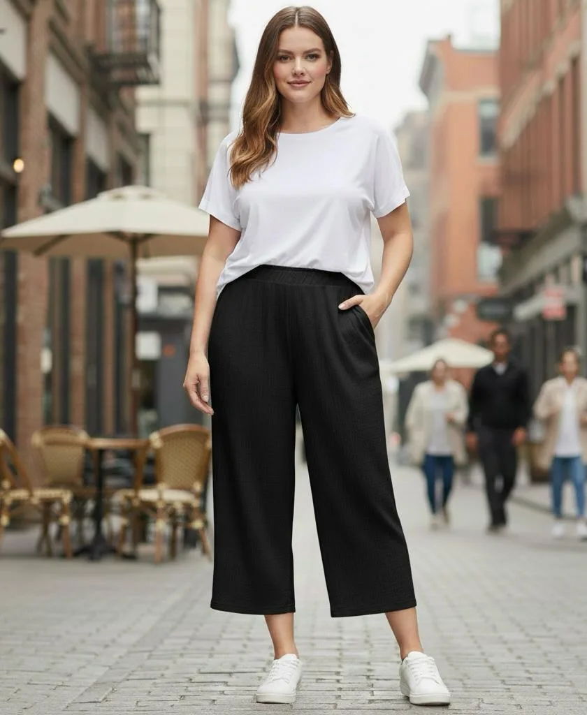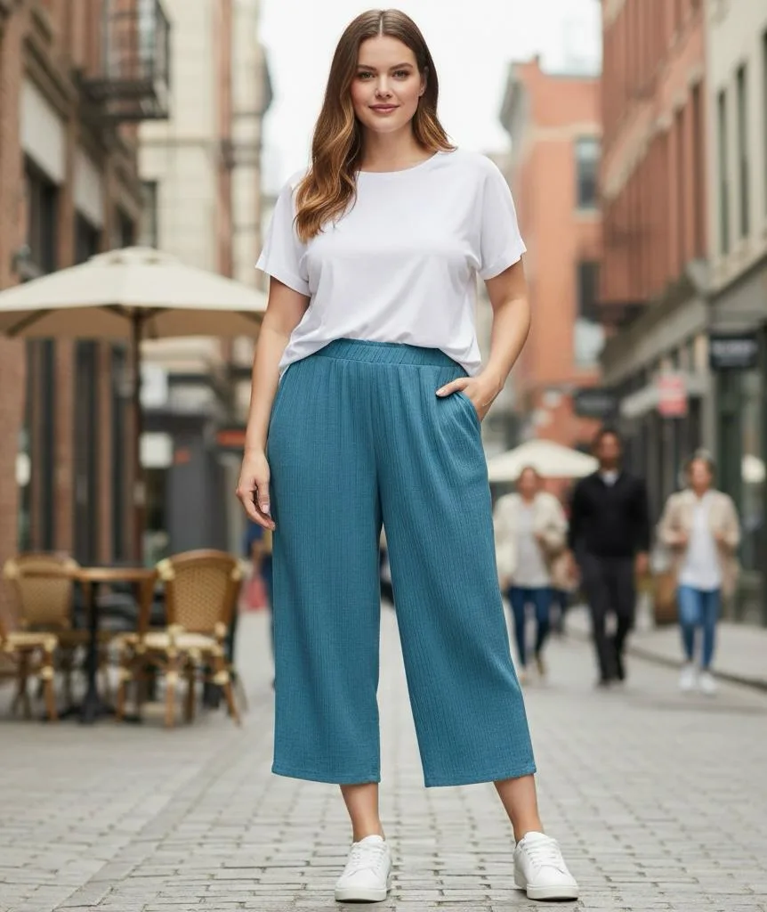 Pantalon de lino mujer talla grande Jessica Simpson caida 3/4