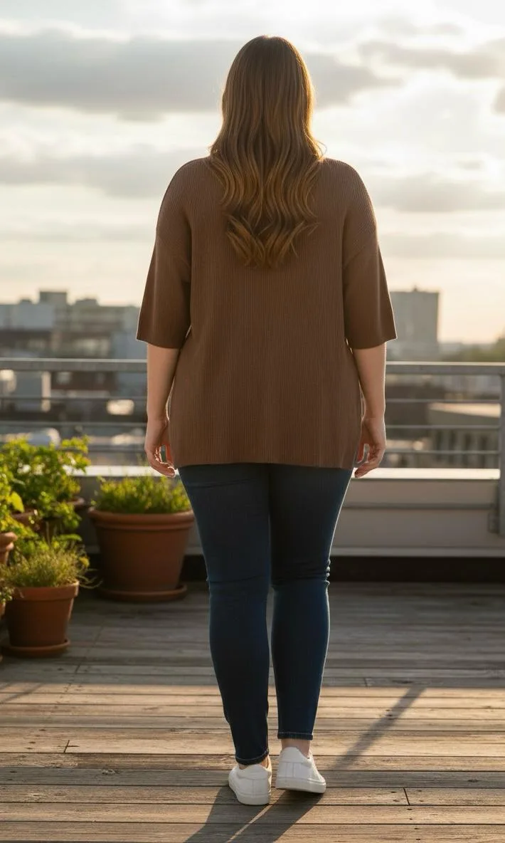 Suéter café mujer 4th Reckles. Diseño cómodo y versátil, ideal para el día a día en talla XL.