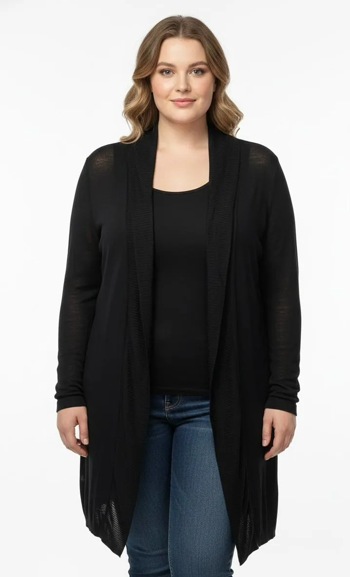 En talla 2XL, con contorno de 136 cm y largo de 110 cm, ofrece un calce cómodo y favorecedor para tallas grandes. Ideal para usar sobre vestidos, blusas o conjuntos, es perfecto para ocasiones especiales, trabajo o salidas donde buscas un look más sofisticado.