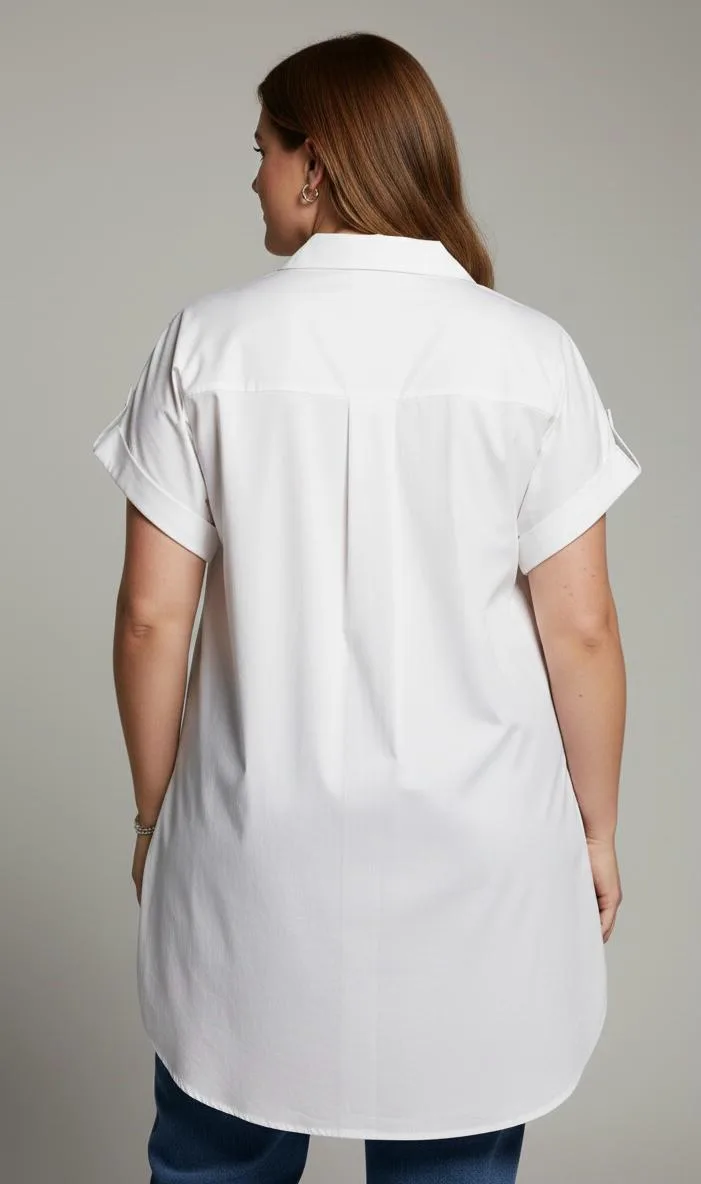 Pensado para ofrecer un calce cómodo y favorecedor, este vestido acompaña las curvas de forma natural sin ajustar ni incomodar. Con un contorno de busto de 110 cm y un largo de 85 cm, brinda una silueta equilibrada que estiliza la figura. El color blanco aporta luminosidad y un aire femenino, ideal para climas cálidos y outfits relajados.