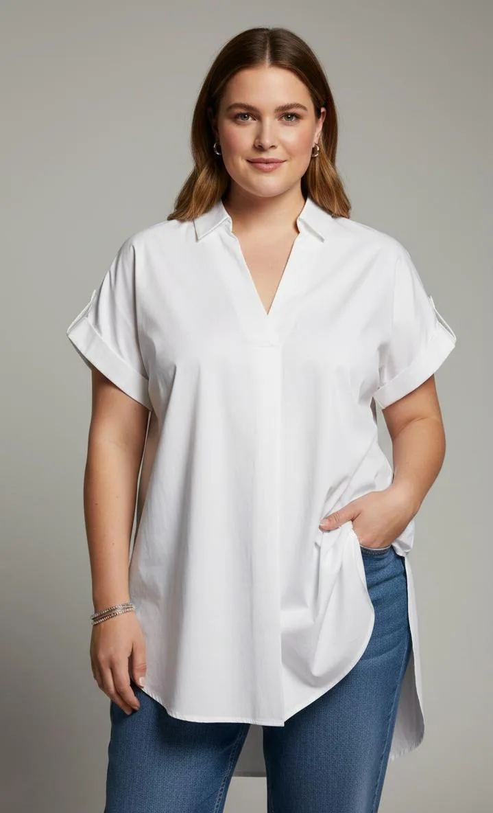 Este vestido blanco para mujer de la marca Zara Basic es una prenda fresca y versátil, ideal para mujeres de tallas grandes que buscan un look limpio, cómodo y fácil de combinar. Su diseño sencillo lo convierte en un básico imprescindible, perfecto para el día a día o para crear estilos más arreglados según los accesorios.